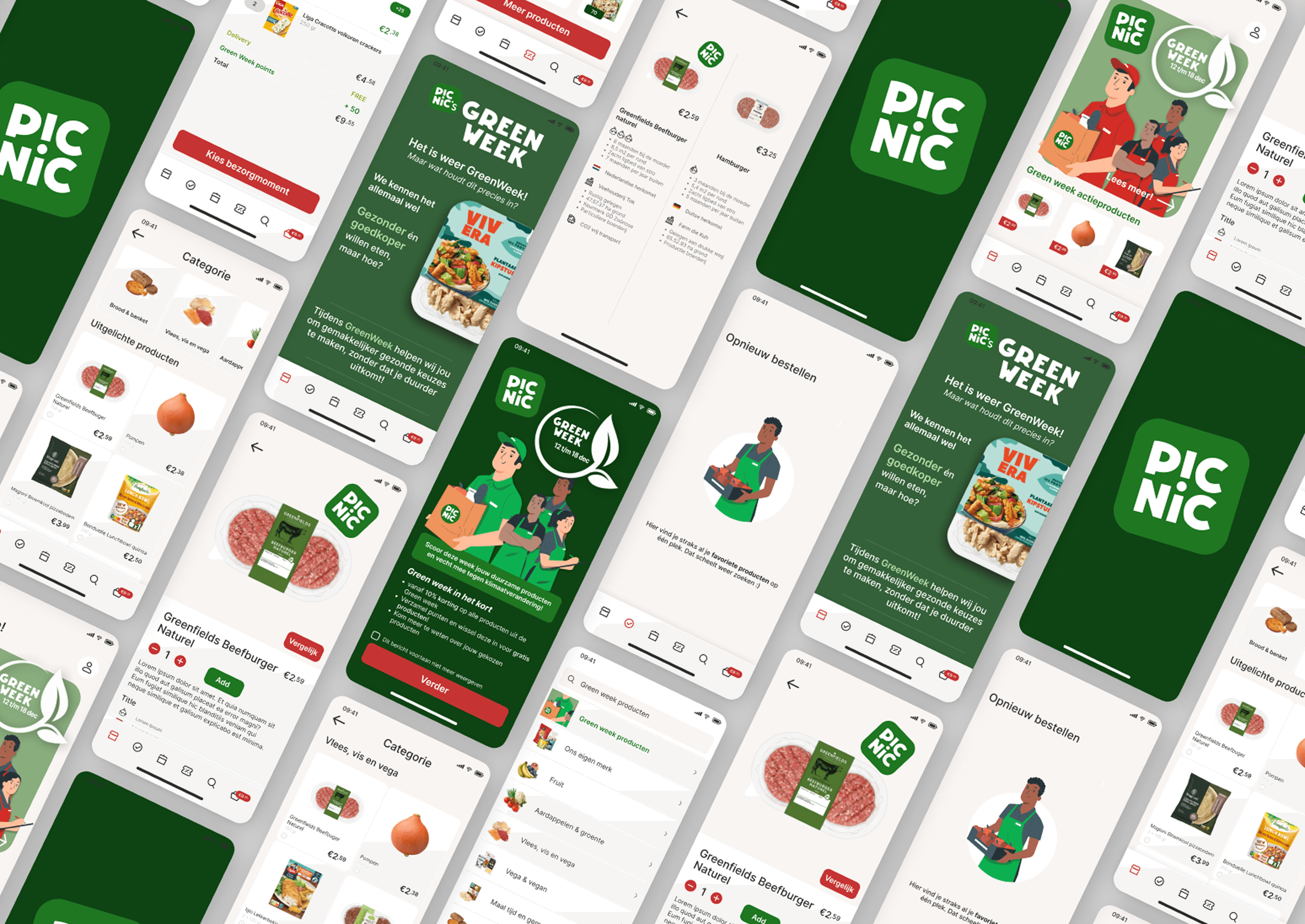 Climate change is a growing concern that most people are aware of, but many still struggle to take meaningful action. In collaboration with IceMobile and Club Leaf, we were tasked with coming up with a commercial solution for a supermarket chain to help consumers make more sustainable choices without disrupting their usual habits. We chose the online supermarket Picnic for its digital-first approach, which opened up interesting opportunities for innovation. Through field research, we discovered that the target group was mainly students that are aware of the climate crisis, but don’t know how to get involved or feel they lack the time, knowledge, or budget to do so. This insight became a key driver in shaping our design direction.