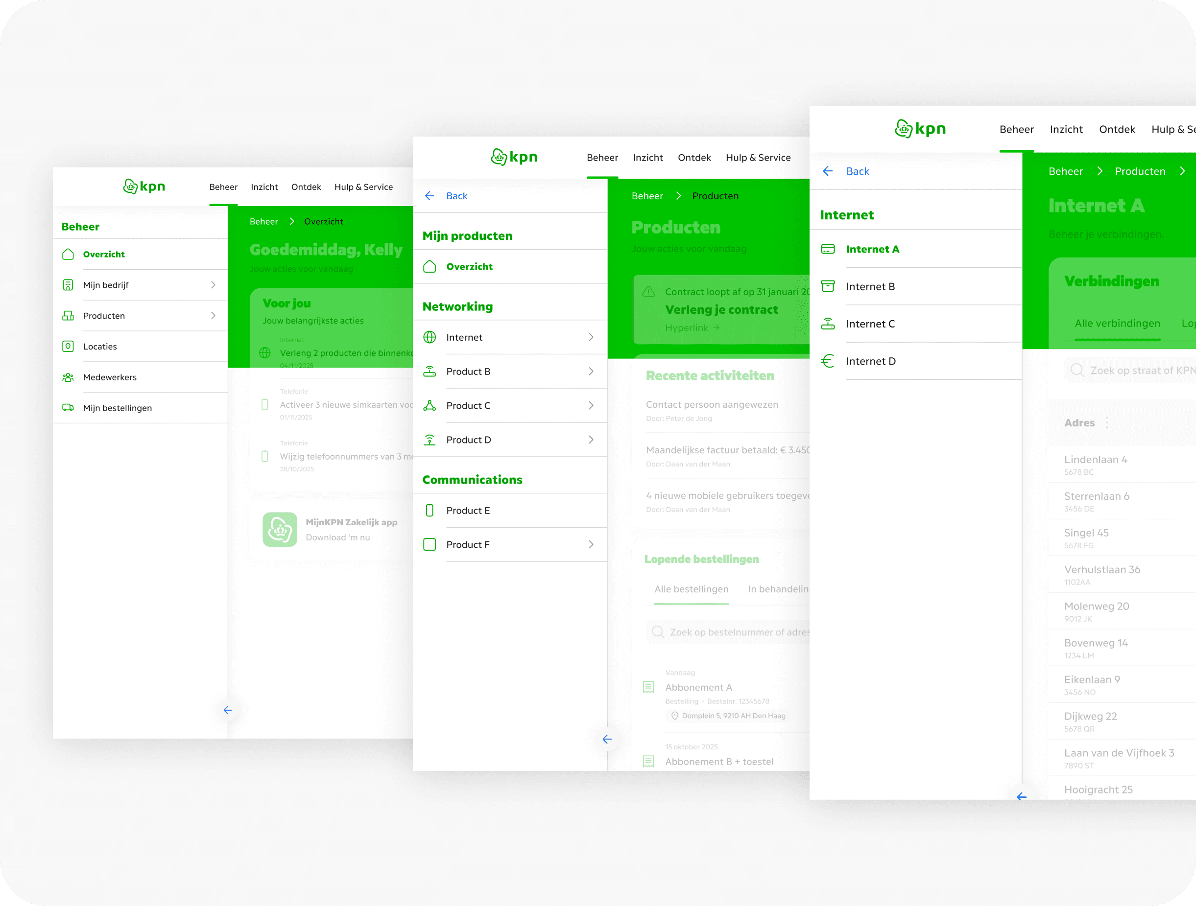 During my graduation internship at KPN, I worked on an internal concept project focused on improving how business customers gain insight into their telecom products across locations.
